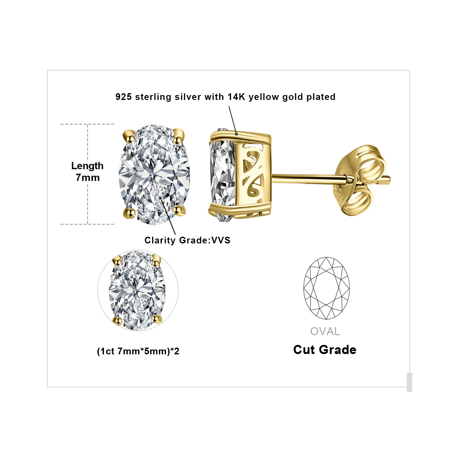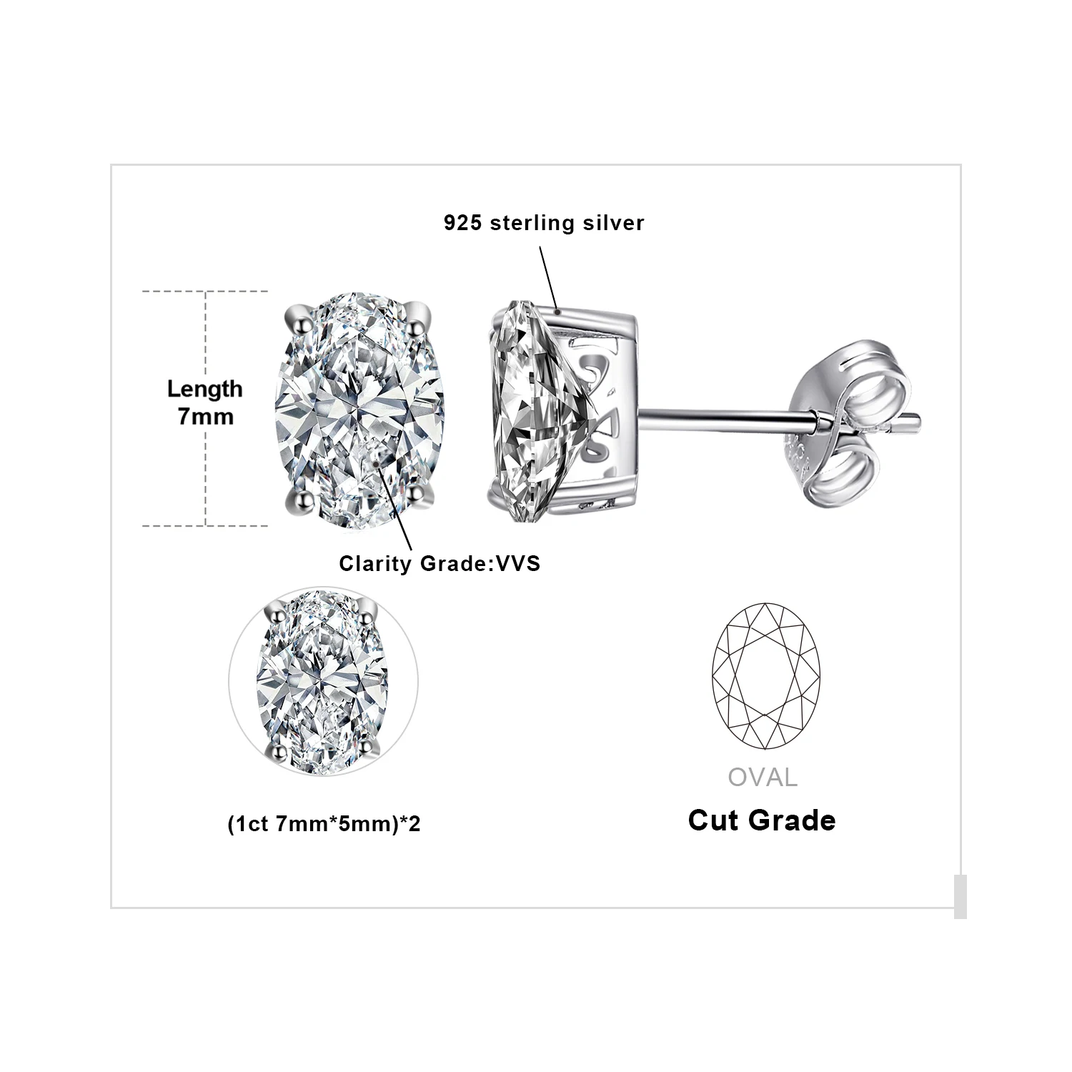 √ FIT ANY OCCASION: Add style to a basic look with these solid S925 sterling silver earrings for women. The unique design of 14k gold earrings makes silver stud earrings stronger and not easy to deform. Our oval moissanite stud earrings, perfect for everyday wear for a statement-making look no matter the occasion. Make a dazzling addition to your jewelry collection!