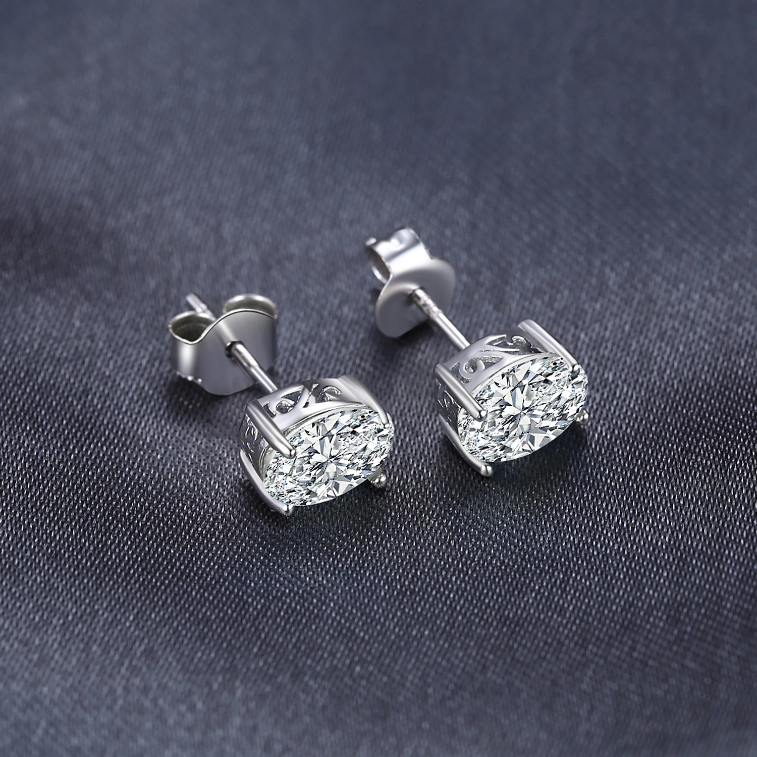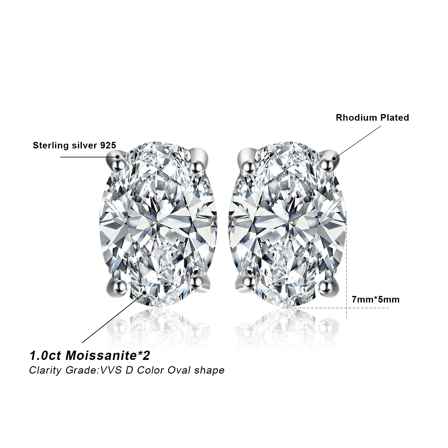 √ HIGH-QUALITY GRA 2CT OVAL MOISSANITE 925 STERLING SILVER EARRINGS FOR WOMEN: Moissanite solitaire stud earrings are made of white gold plated solid S925 sterling silver, known amongst jewelry wearers for its strength, brightness, and shine. Our silver stud earrings for women are tarnish-resistant, ensuring there is no tarnish residue on the skin. Rhodium plating provides a long-lasting luster for 925 sterling silver stud earrings for women! Completely hypoallergenic, allergy-free, nickel-free, lead-free, and cadmium free to prevent irritation.