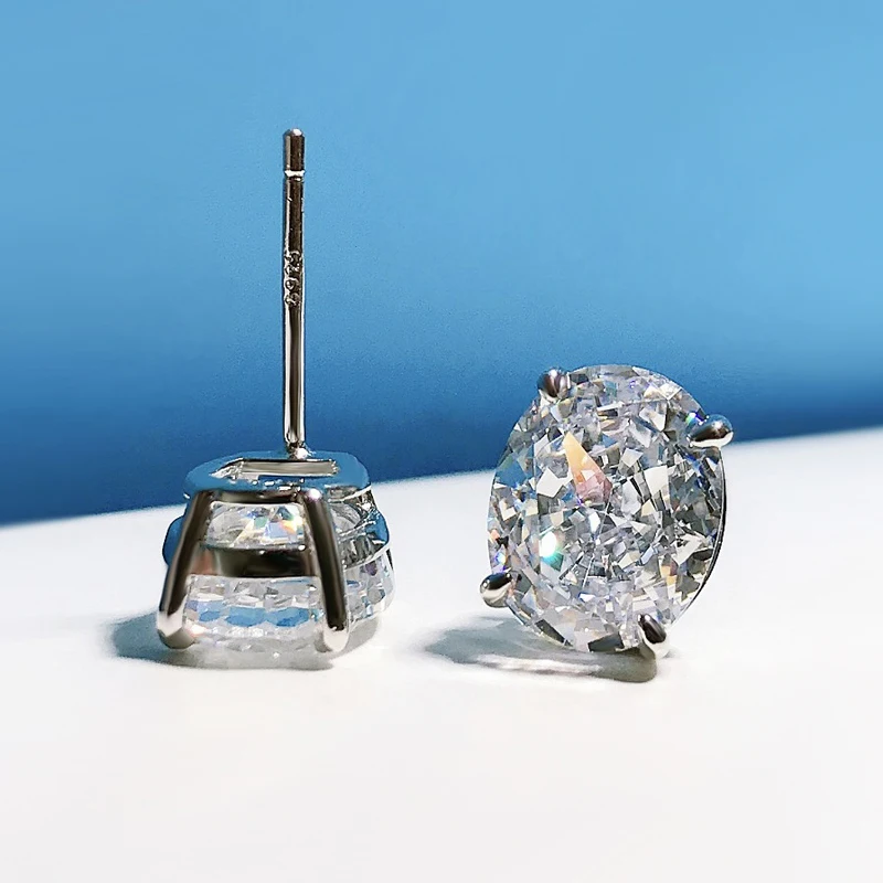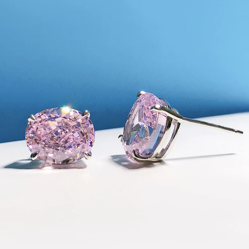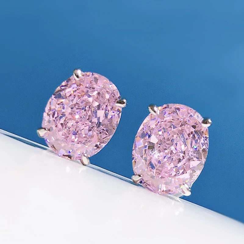 Name:OEVAS 100% 925 Sterling Silver 8*10mm Yellow Pink High Carbon Diamond Stud Earrings For Women Sparkling Wedding Fine Jewelry